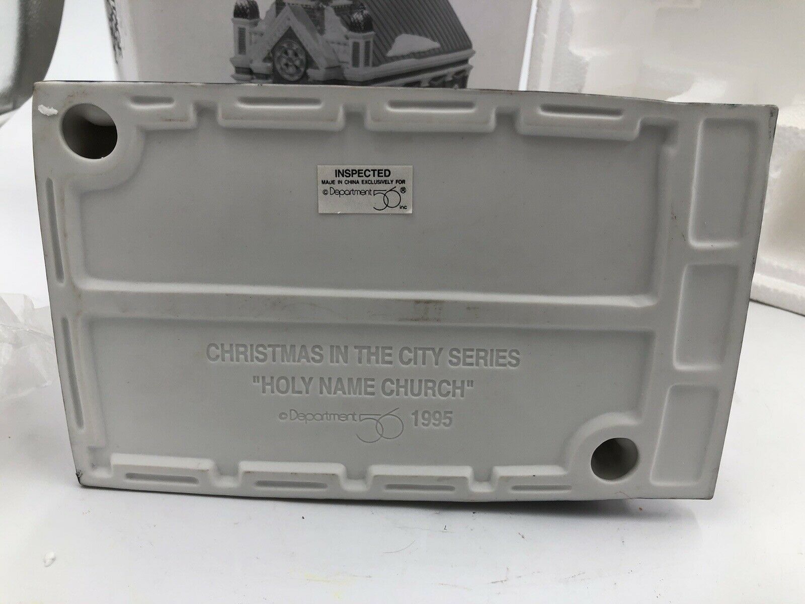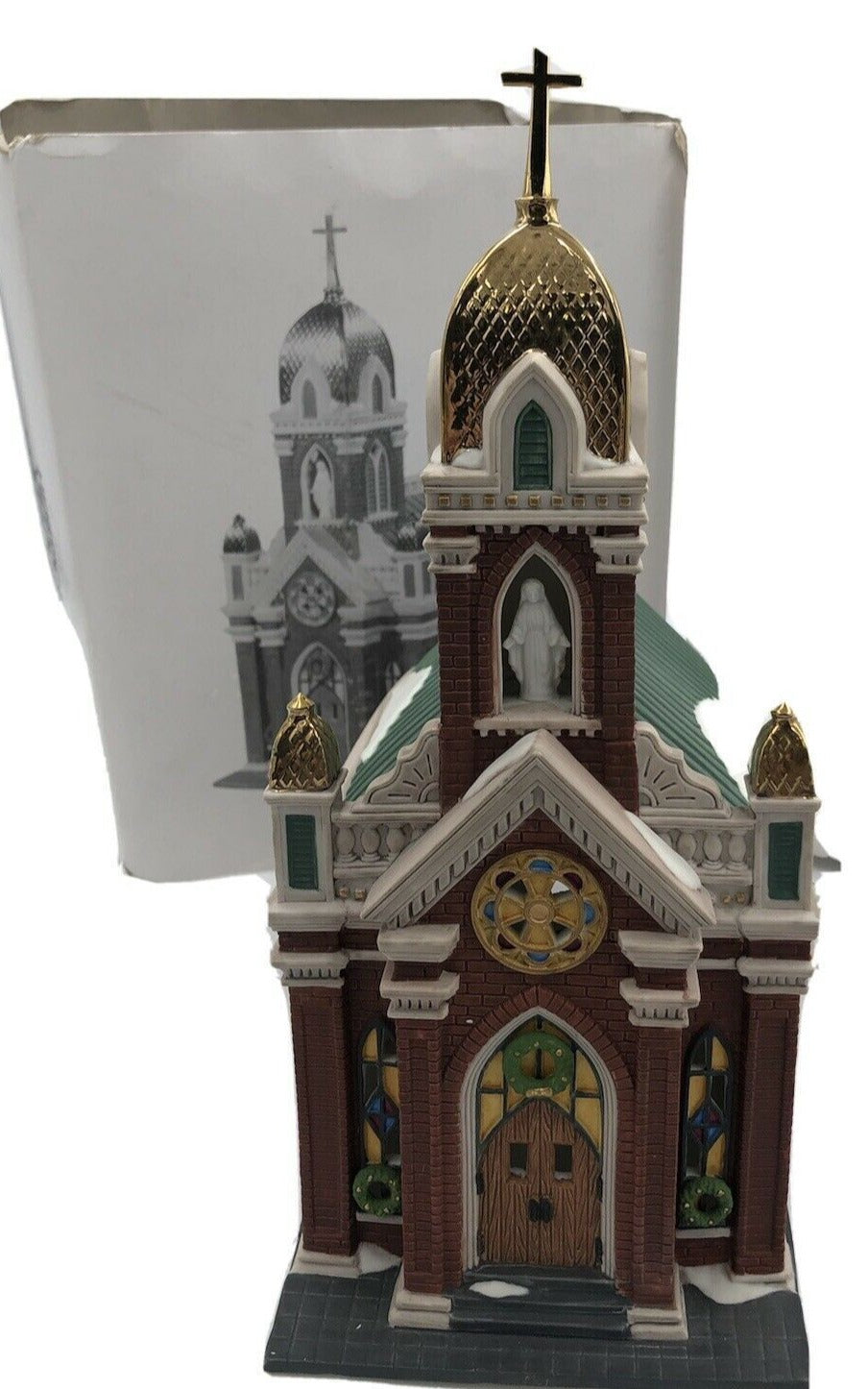 Released in1995. Christmas in the City "Holy Name Church" design features include a porcelain Madonna, 18- karat-gold painted tower, cross spires and stained glass rose window. Inspired by the Cathedral of the Immaculate Conception in Kansas City. Item #58875. RETIRED in 2003. Please see pictures for item condition details. Condition is "Used".