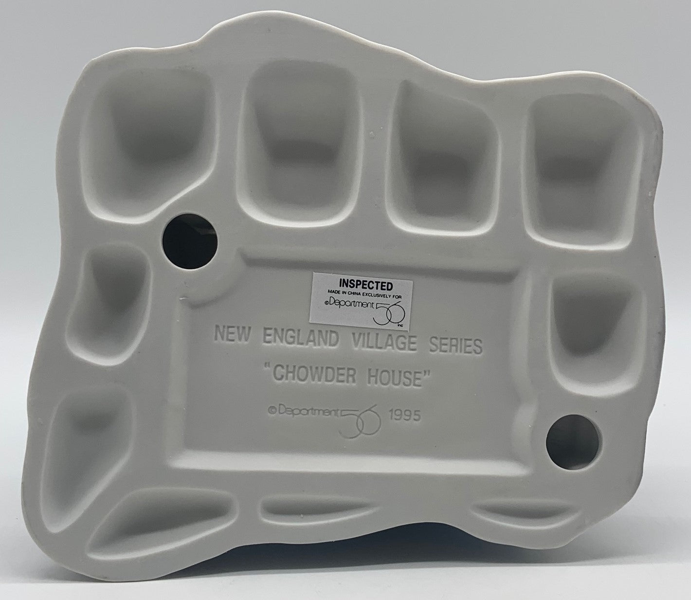 Released in 1995.  The Department 56- New England 'Chowder House' is an intricately detailed residence crafted from ceramic.  Item # 56571.  Retired in 1998.  See photos for item and box condition,  Item is "used".