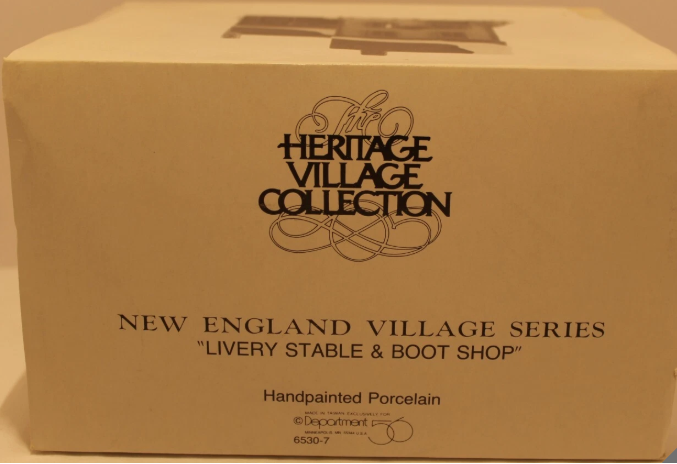 Released in 1986. Step back in time with this charming Department 56 New England Village "Livery Stable & Boot Shop" collectible. One of the original 7 New England buildings. Item #65307. Retired in 1989. See photos for item and box condition. Item is "used".