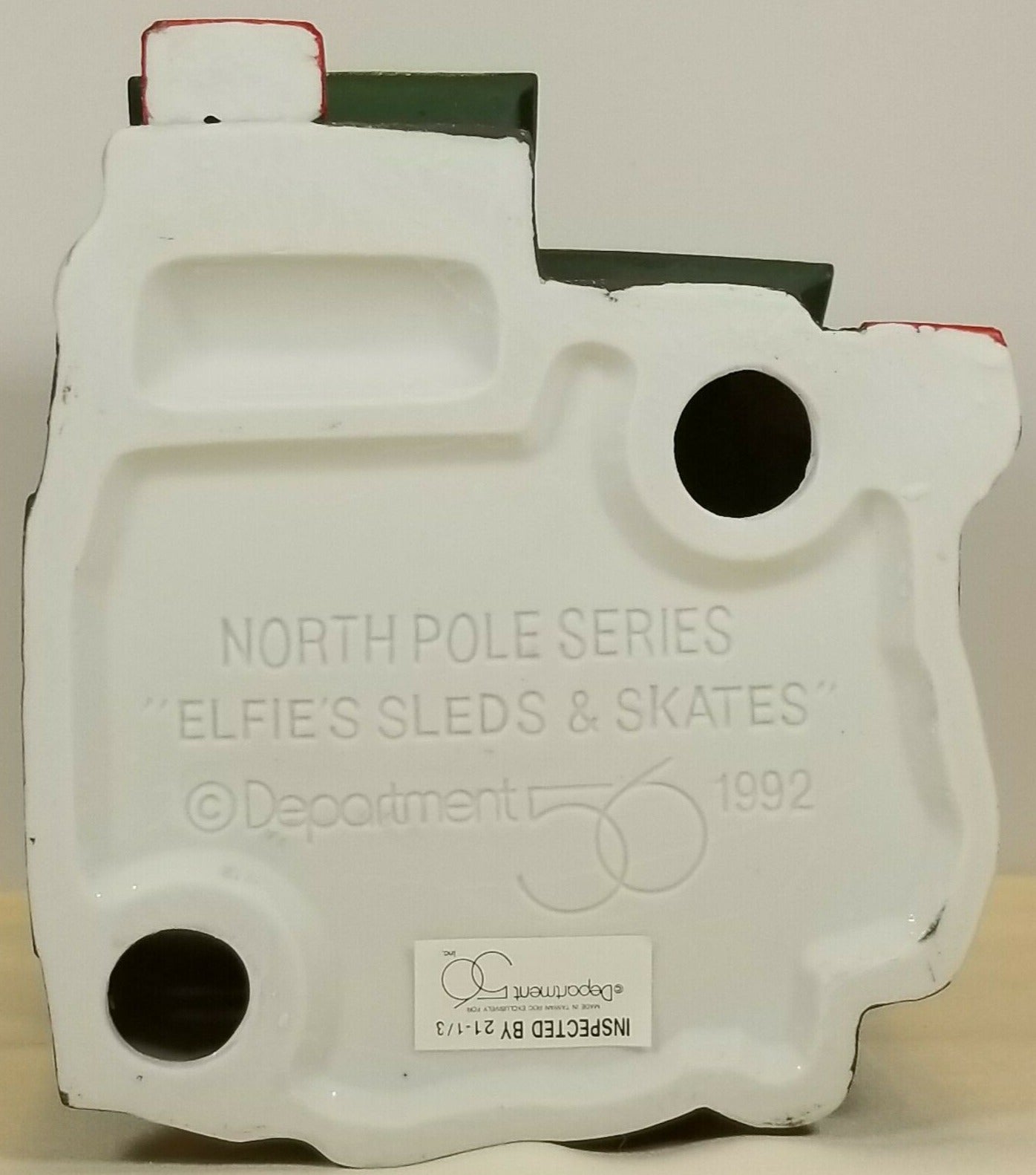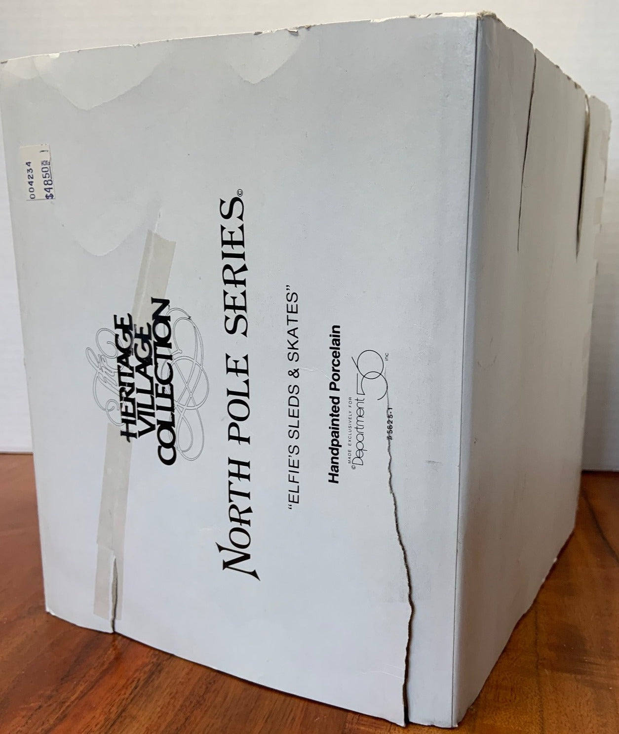 Released in 1992. North Pole Village "Elfie's Sleds & Skates" RETIRED in 1996. Please see pictures for item and box condition details. Condition is "Used"