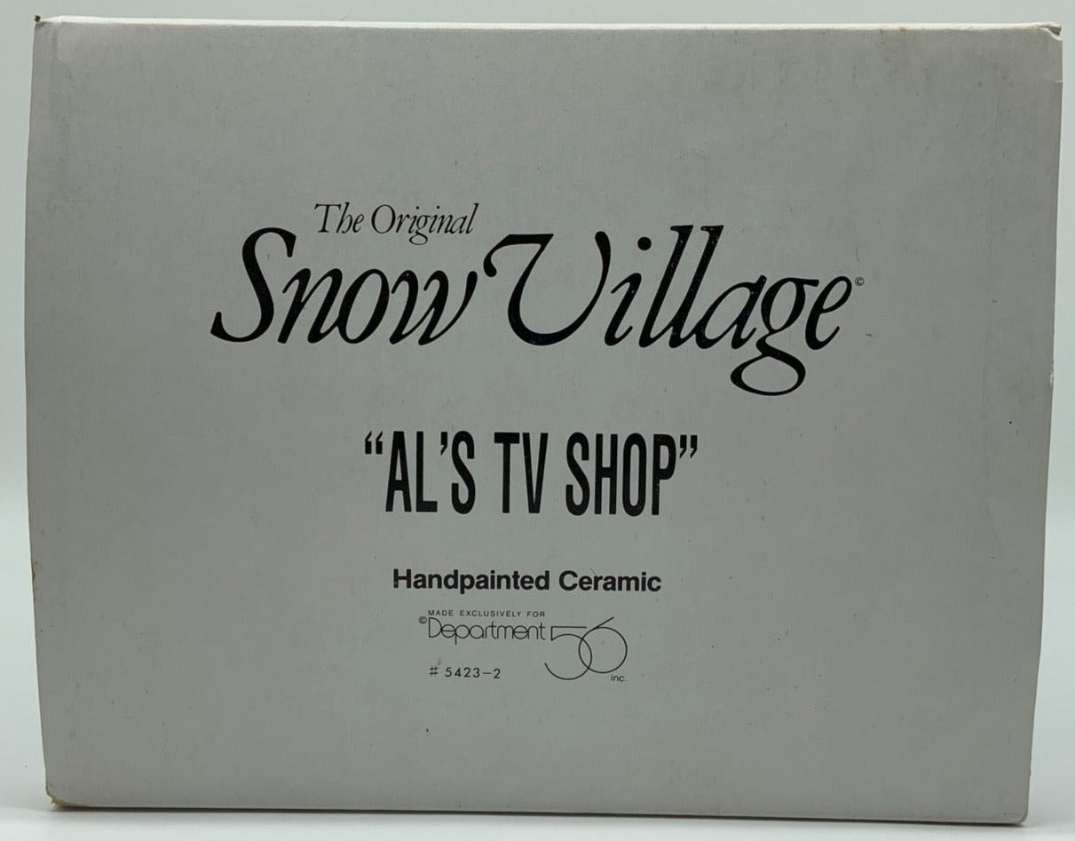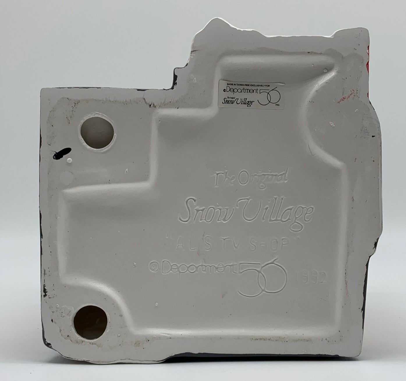 Snow Village "Al's TV Shop". Released in 1992. Item #54232. Retired in 1992. Item is "USED". See photos for item and box condition.
