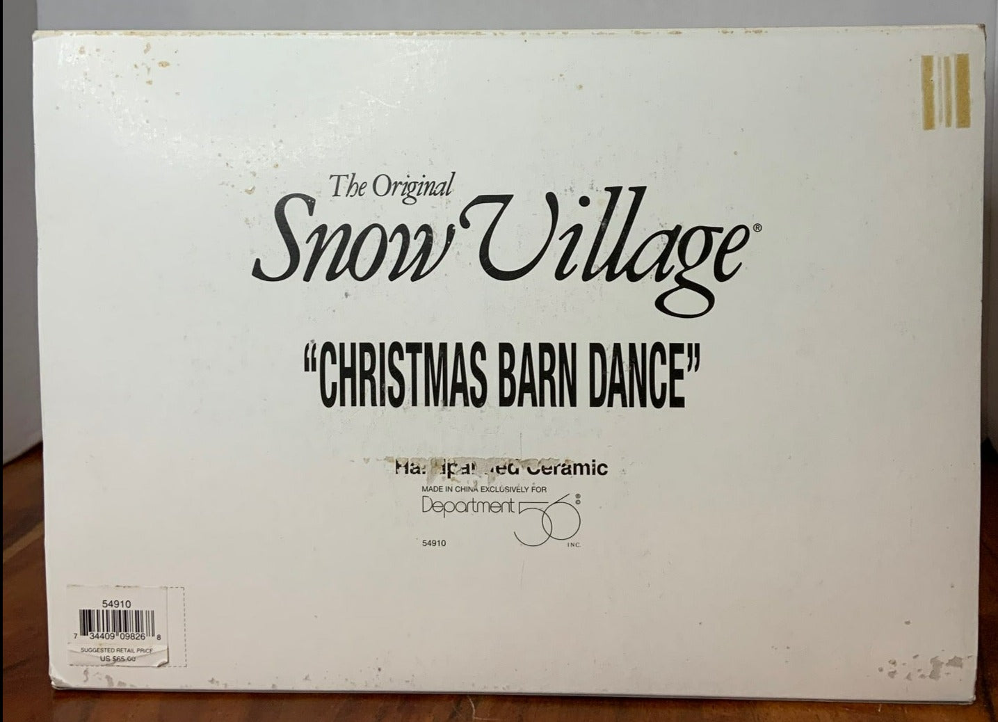 Released in 1997. Snow Village "Christmas Barn Dance" is a large brick and stone barn with doors open displaying an interior scene. Companion building for "Farm House". Item #54910. Retired in 1999.