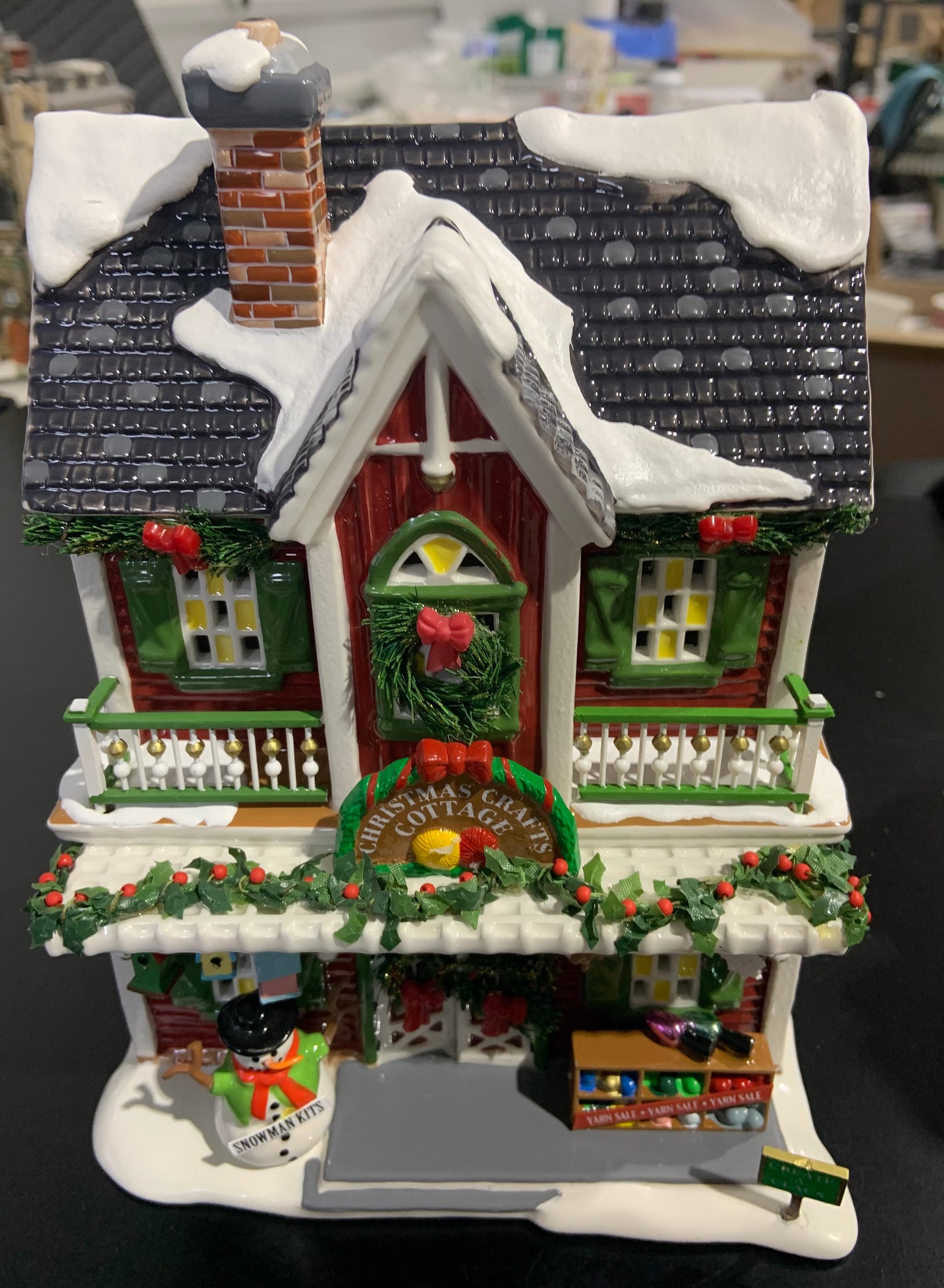Released in 2006. Snow Village "Christmas Crafts Cottage" is a red 2-story wood-sided crafts store with green and white trim. Design includes signs, holly garland, snowman, hanging bird houses, pine sisal wreaths and garland, snowflakes and a yarn box. RETIRED in 2009. Please see pictures for item condition details. Condition is "Used"