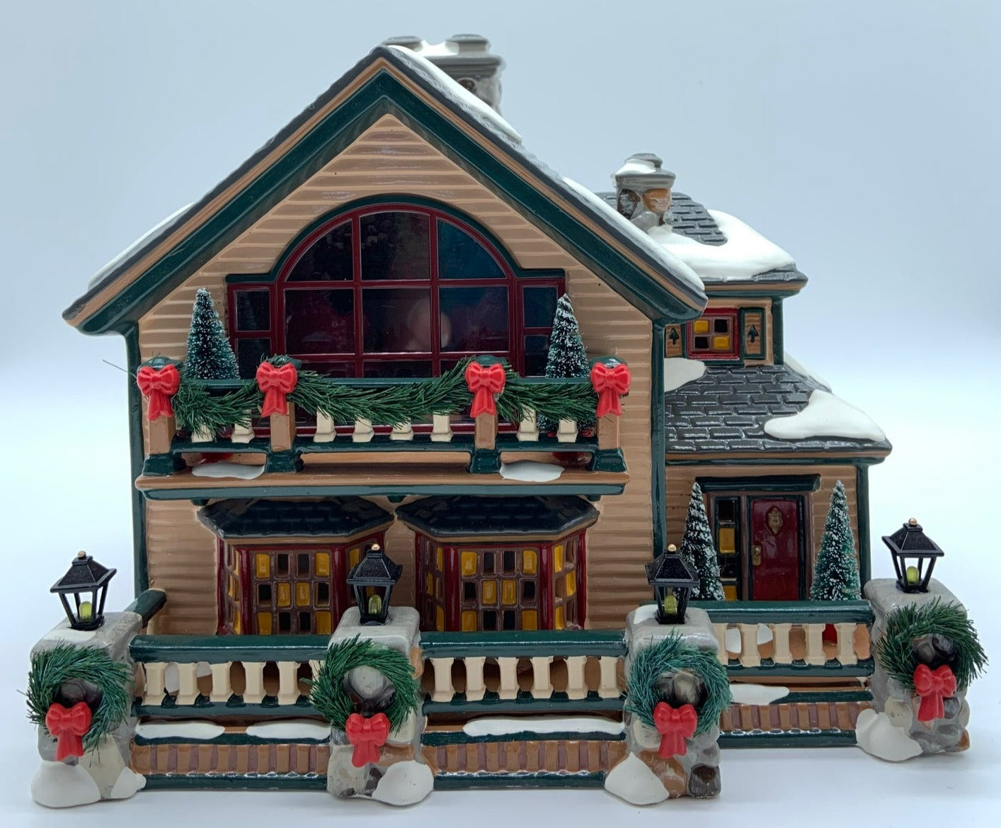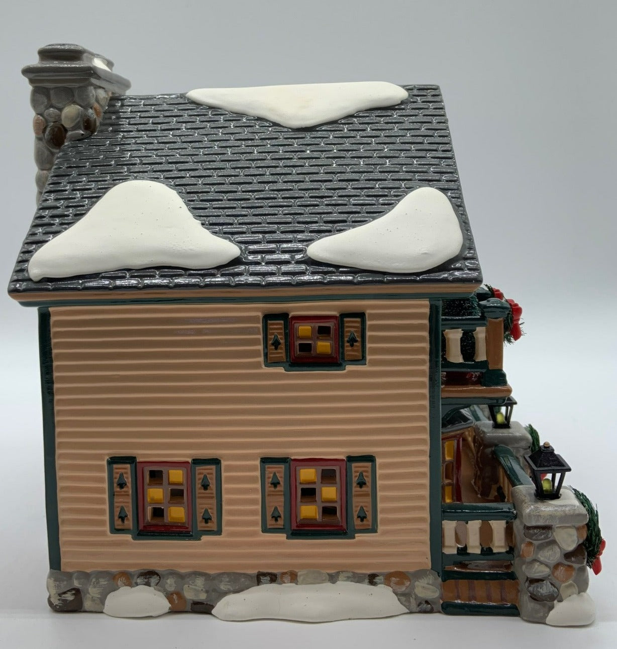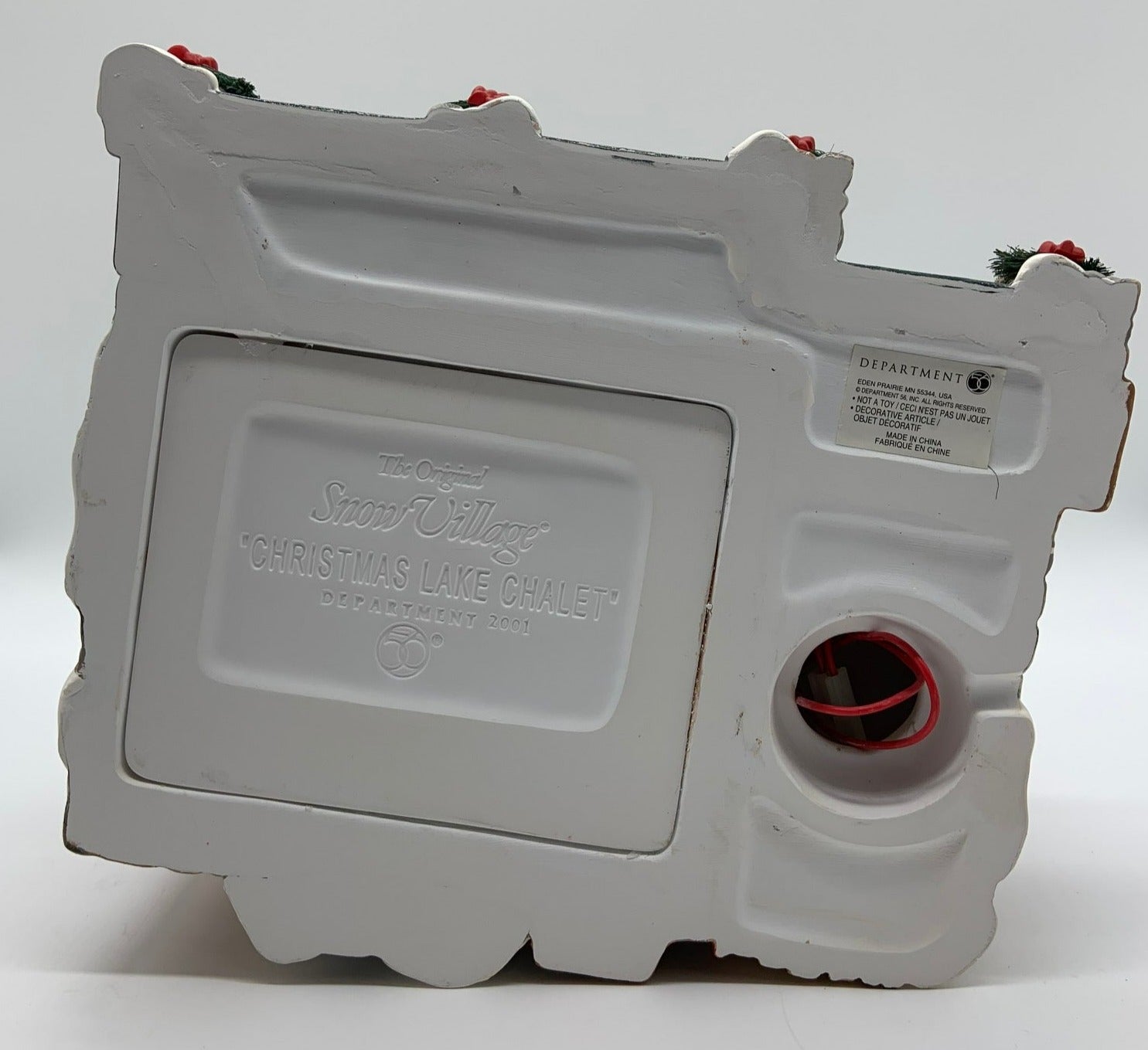 Released in 2001. Snow Village "Christmas Lake Chalet" is limited to the year of production. Set of 5 includes; home with flickering lighted fireplace, "The Final Touch" accessory, 2 sisal trees and "Fresh Fallen Snow". Design elements include 4 LED porch lights and Christmas decorations on the house. Item # 55061. Retired in 2001. See photos for item and box condition. Item is "used".
