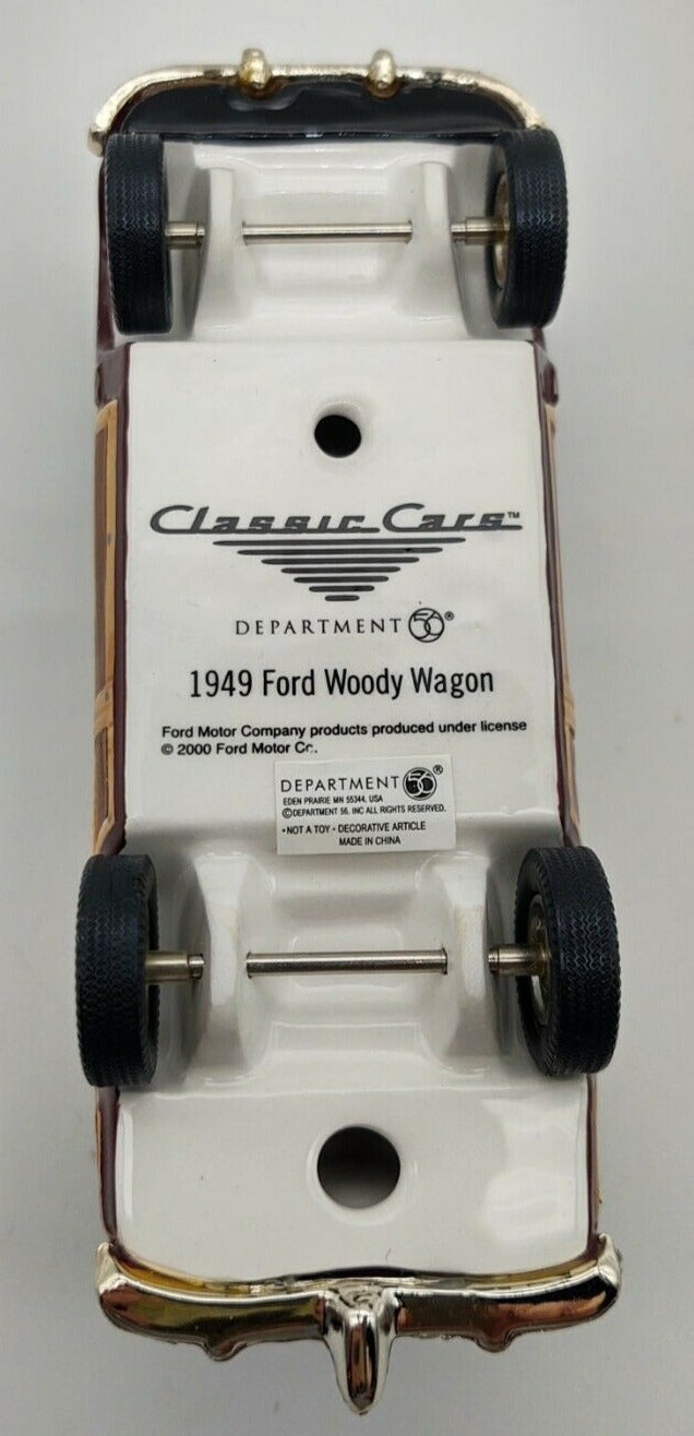 Released in 2000. Snow Village Classic Cars "1949 Ford Woody Wagon" is a highly detailed vehicle. Licensed by Ford Motor Co. Item # 55288. Retired in 2006.