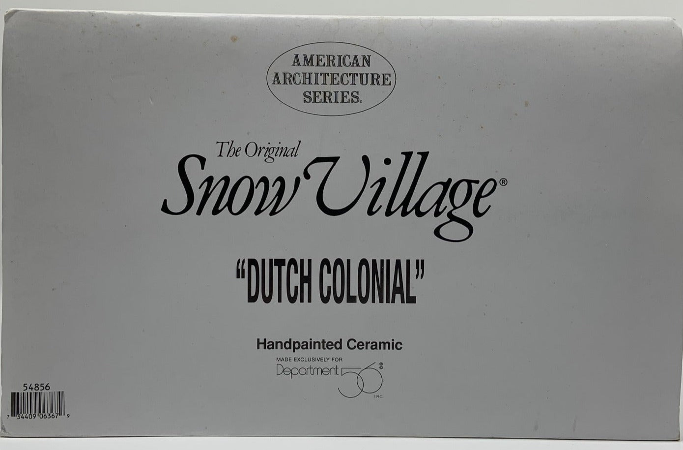 Released in 1995. Snow Village "Dutch Colonial" is the 7th building in the American Architecture Series. Item # 54856. Retired in 1996. Item is "used" see photos for item and box condition.