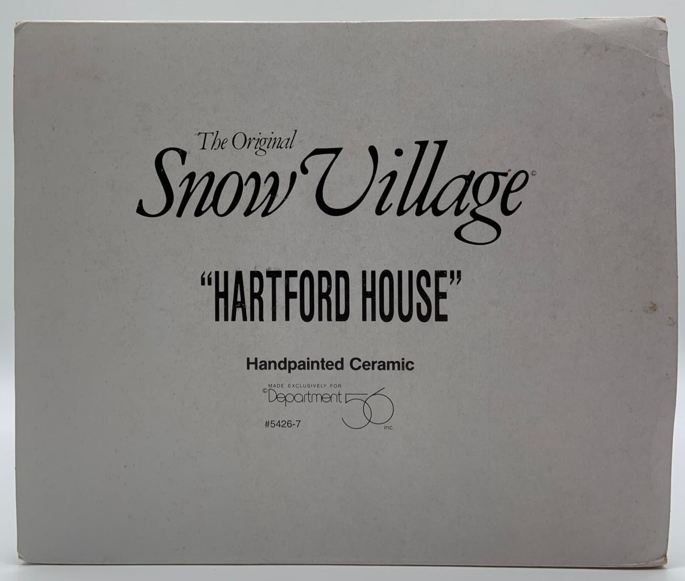 Release in 1992. Snow Village "Hartford House" is a 2-story clapboard home. Item #54267. Retired in 1995. Item is "used" see photos for item and box condition.