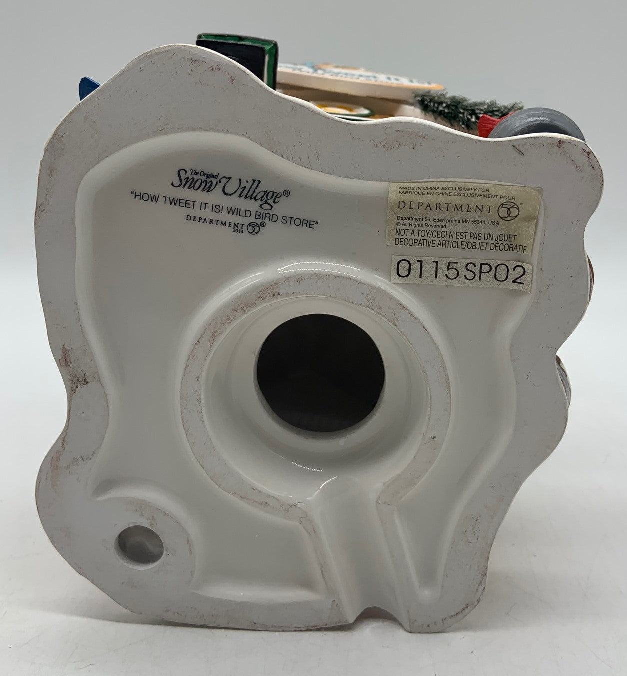 Released in 2014. Discover the charm of Department 56 Snow Village with the "How Tweet It Is Wild Bird Store." Item # 4036569. Retired in 2016. See photos for item condition. Item is "used". Note: no box. and small chip on back.