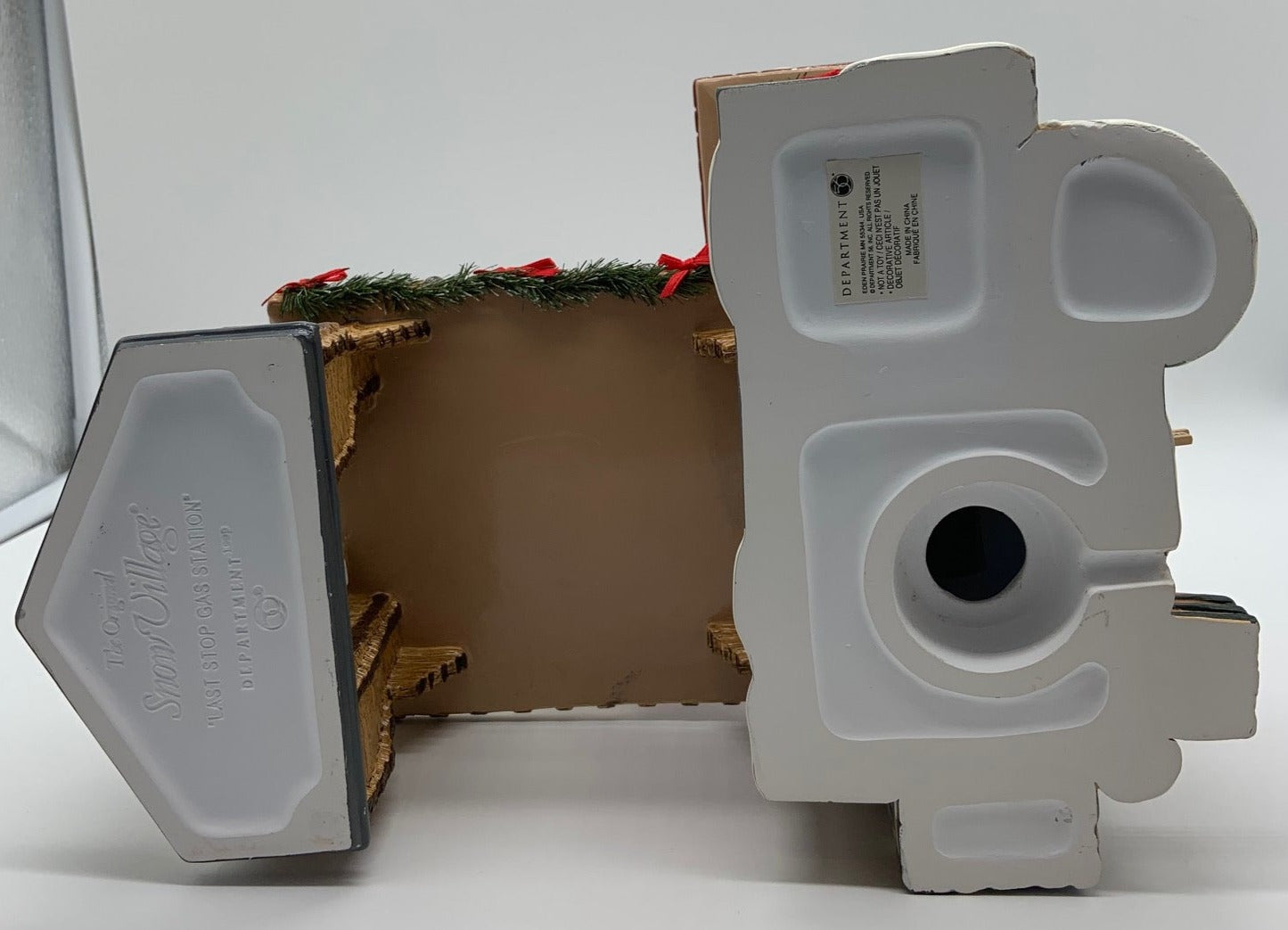 Released in 1999. now Village "Last Stop Gas Station" set of 2 includes log cabin style station and twin gas pumps. Item # 55012. Retired in 2001. Item is "used" see photos for item and box condition.