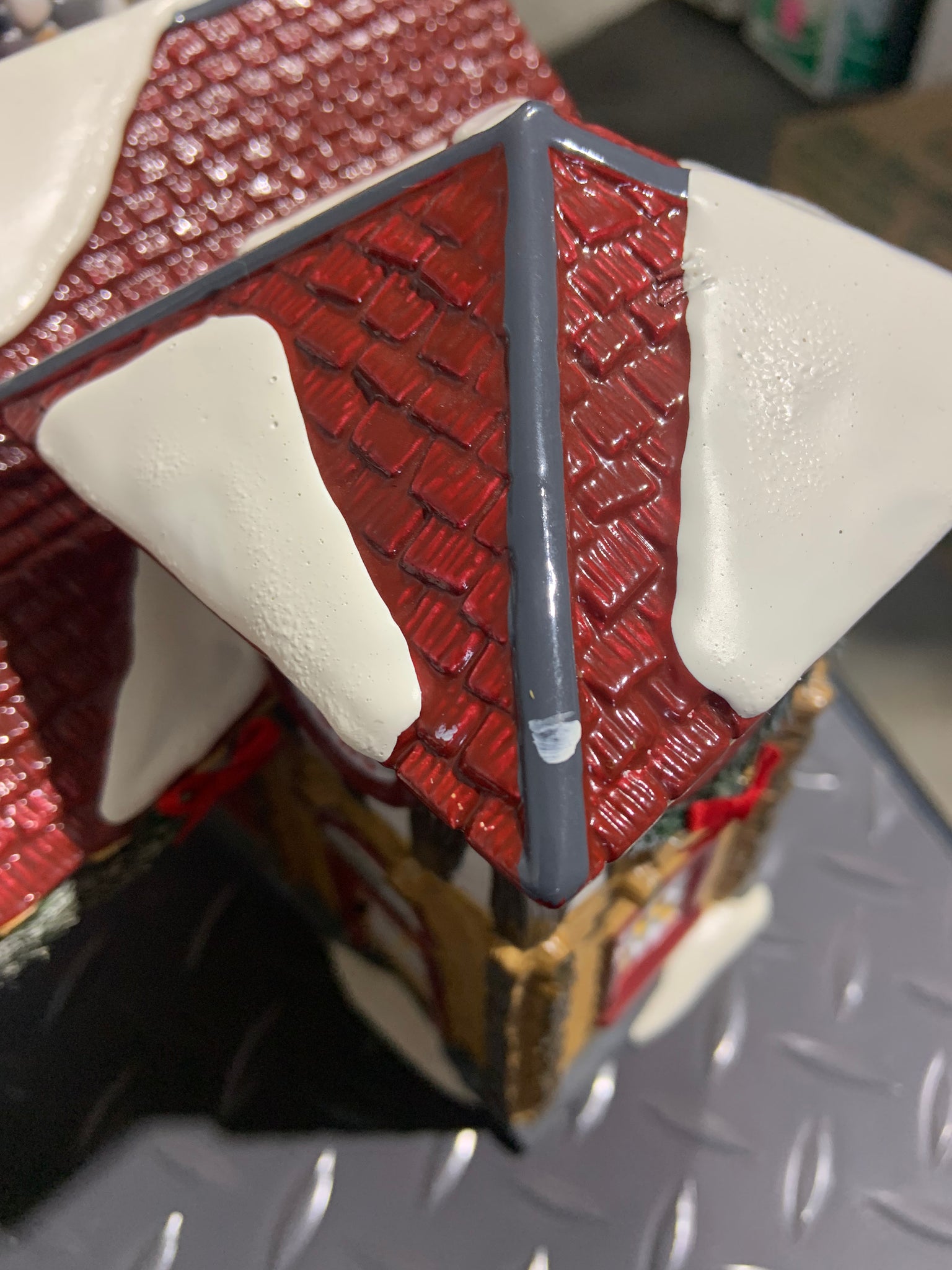 Released in 1999. now Village "Last Stop Gas Station" only. Item # 55012. Retired in 2001. Item is "used" see photos for item and box condition. Note: Free standing pump has been repaired. Small smudge in paint on roof.