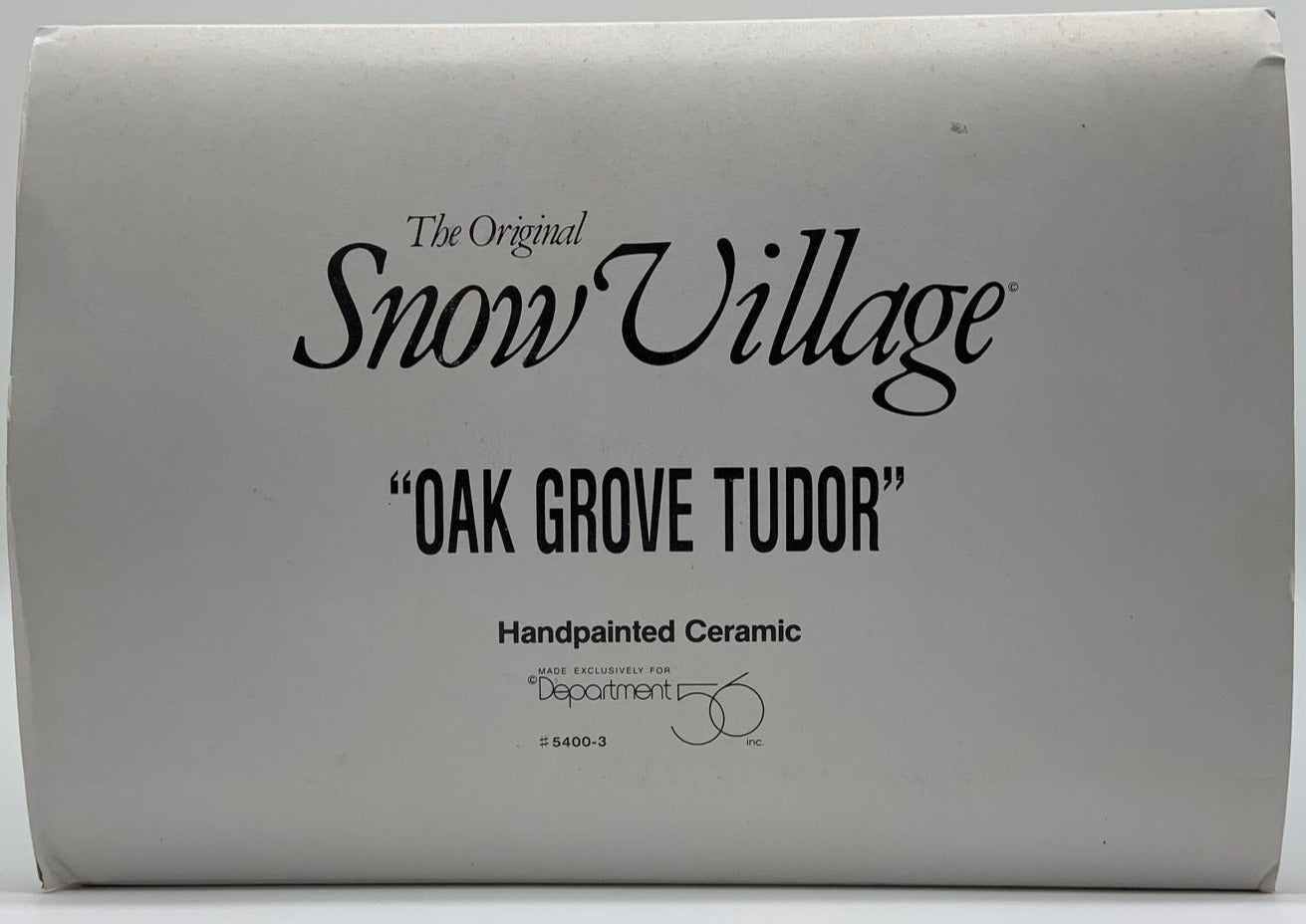 Released in 1991. Snow Village "Oak Grove Tudor" is a brick 2-story home. Item #54003. Retired in 1994. Item is "used" see photos for item and box condition.