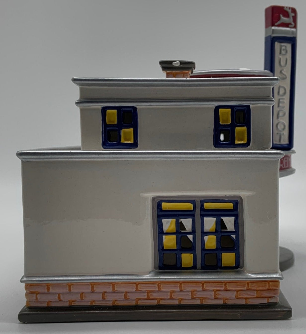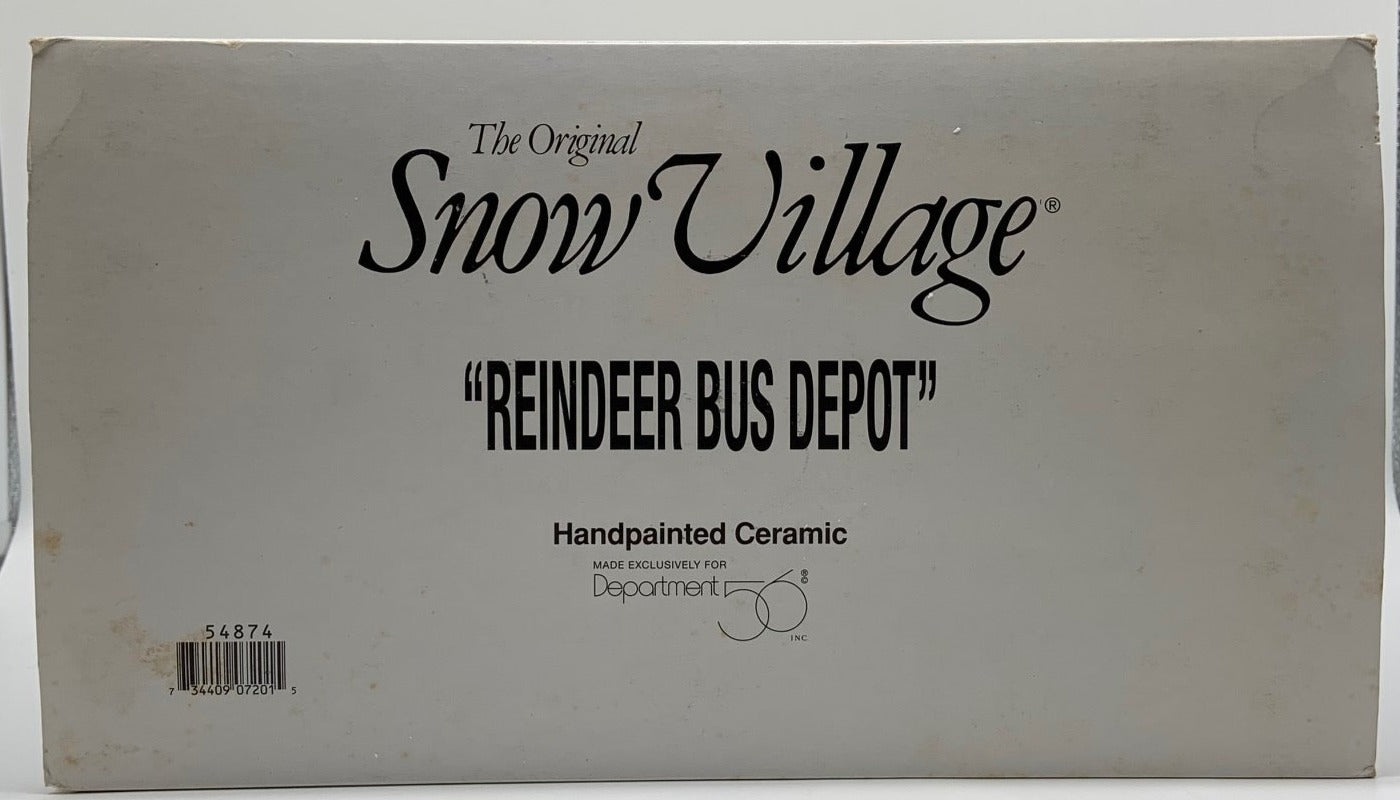 Released in 1996. Snow Village "Reindeer Bus Depot" is an art-deco style bus depot with interior restaurant. Item # 54874. Retired in 1997. Item is "used" see photos for item and box condition.