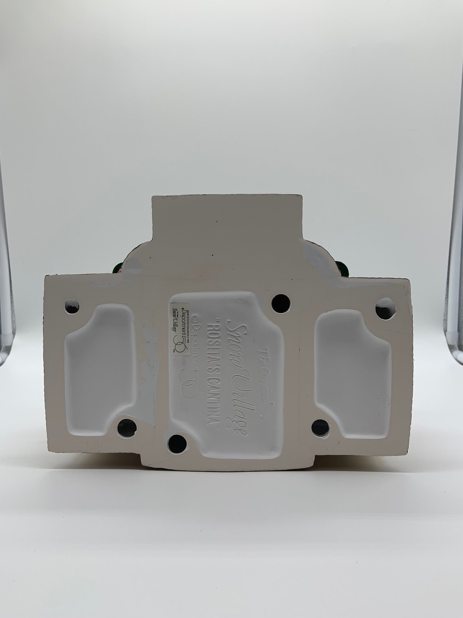 Released in 1996. Snow Village "Rosita's Cantina" is a Mexican-style restaurant. The outdoor lighting matched "Village Country Road Lampposts #52628). Item # 54883. Retired in 1999. Item is "used" see photos for item and box condition. Note: sign missing on side of building.