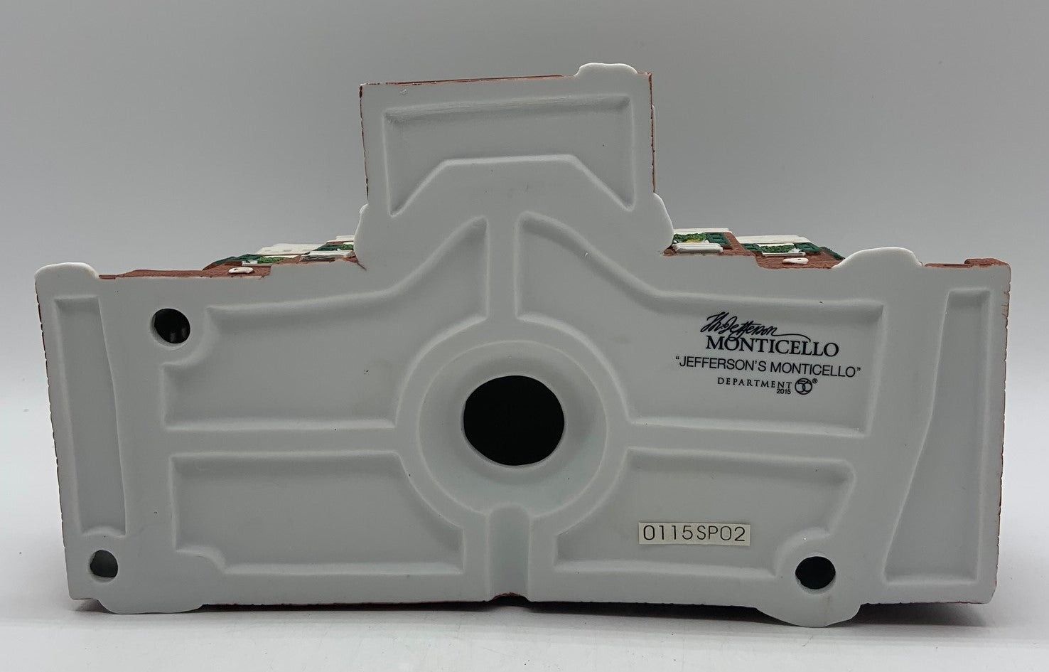 Released in 2015. Celebrate American history with the Department 56 Thomas Jefferson Foundation "Monticello" collectible. Commissioned Exclusive for the Thomas Jefferson Foundation. Item # 4046068. Retired in 2016. See photos for item condition. Item is "used". Note: no box.