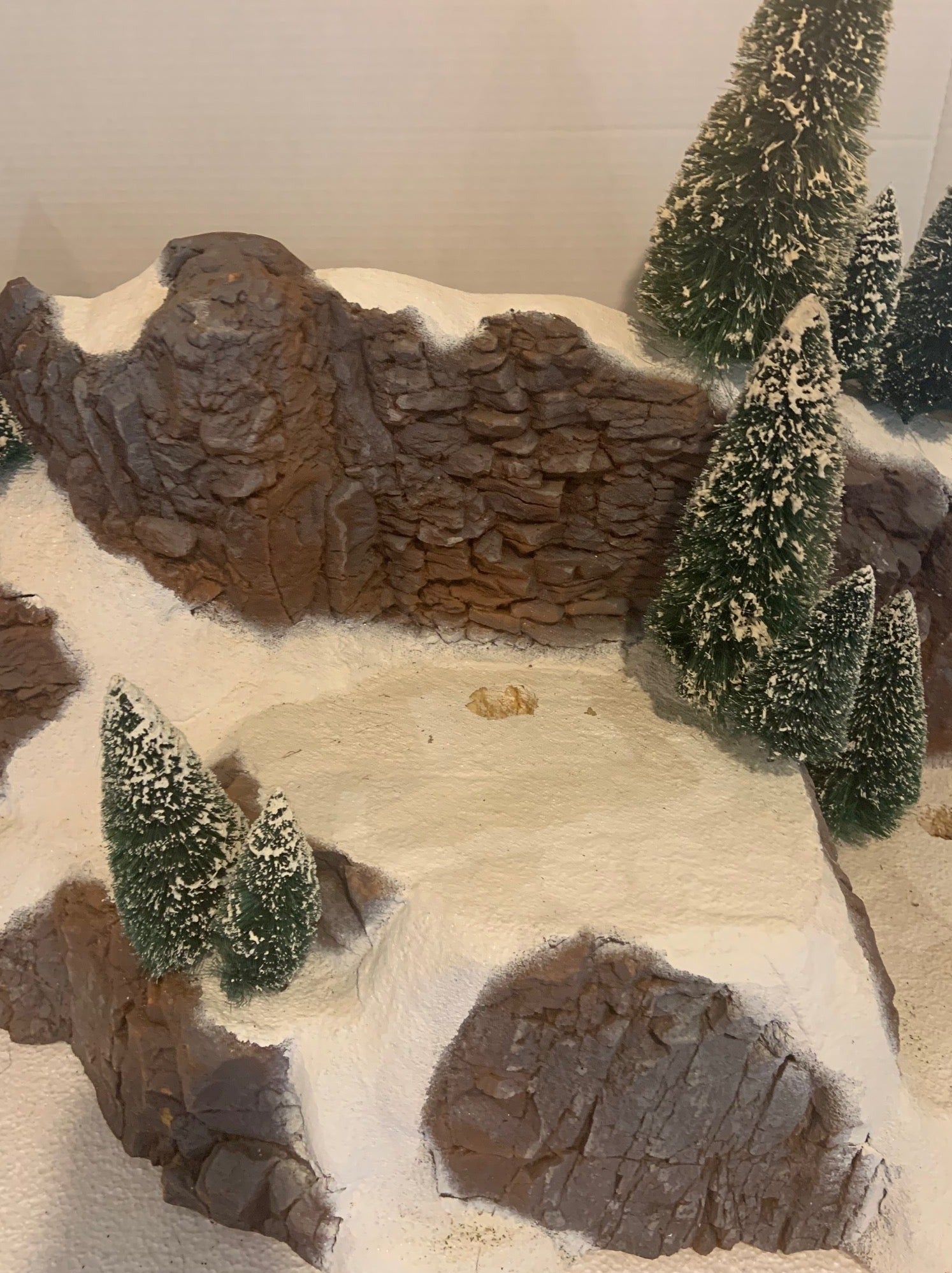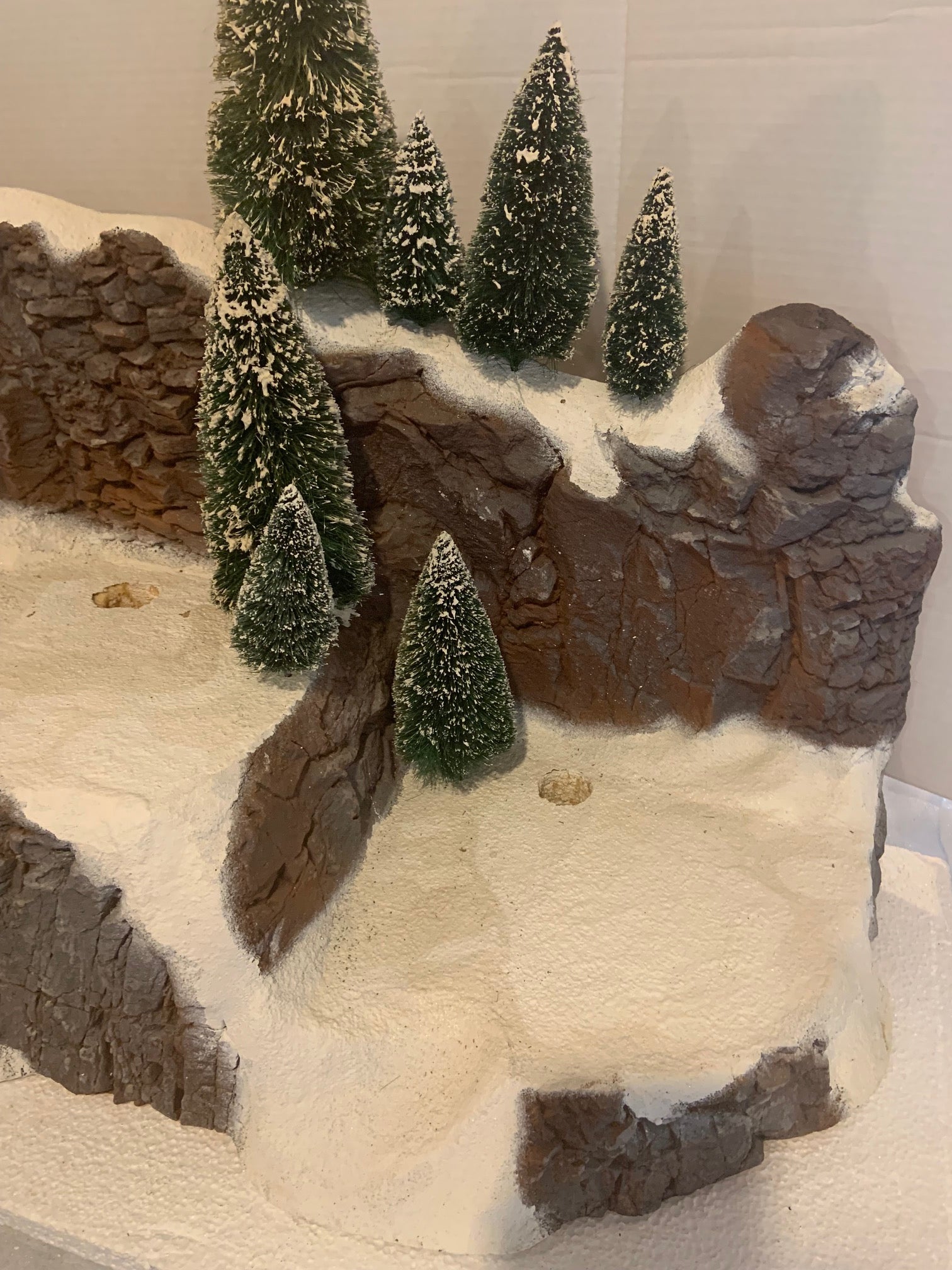 Dept 56- Village "Mountain - Large" Item #52280. Includes 13 sisal trees. Item is "used" see photos for condition. Includes Box.