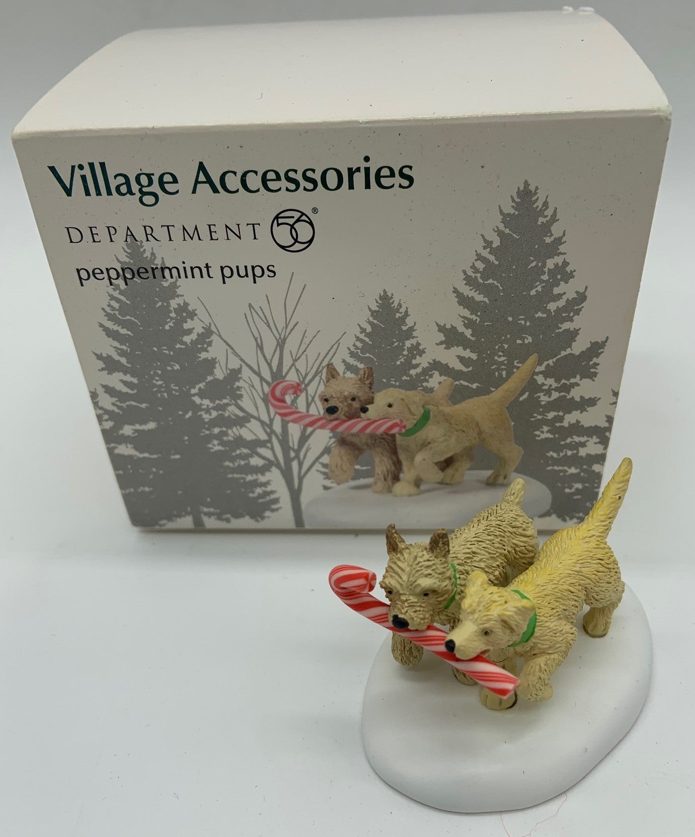 Released in 2020. Add a festive touch to your village collection with the Department 56 Village Accessories "Peppermint Pups." These charming accessories bring a playful holiday spirit, perfect for enhancing any winter scene. Item # 6005517.