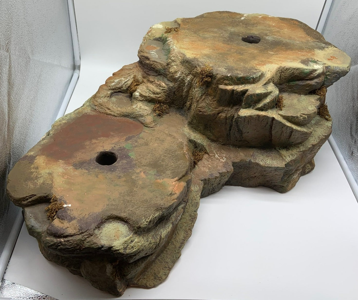 Released in 2001. "Village Mountain High" is a natural rock looking platform with space for 2 buildings.  The overall size is approx. 26" long by approx. 16" wide by approx. 10" tall at the highest point. . Item is sturdy and heavy.  In original packaging.  Item #52977.  Retired in 2005.