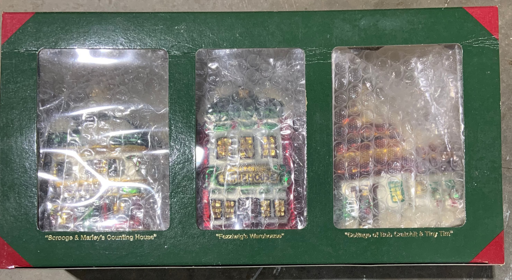 Bring the magic of Dickens' timeless tale to your tree with this enchanting set of three glass ornaments from Dept 56's beloved Dickens' Village collection.