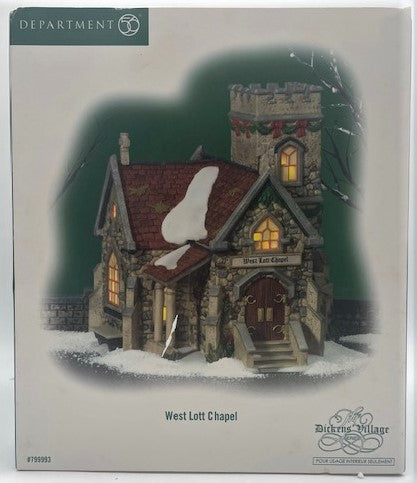 Released in 2008. Dickens' Village "West Lott Chapel" Item # 799993. Retired in 2010. See photos for item and box condition. Item is "used"