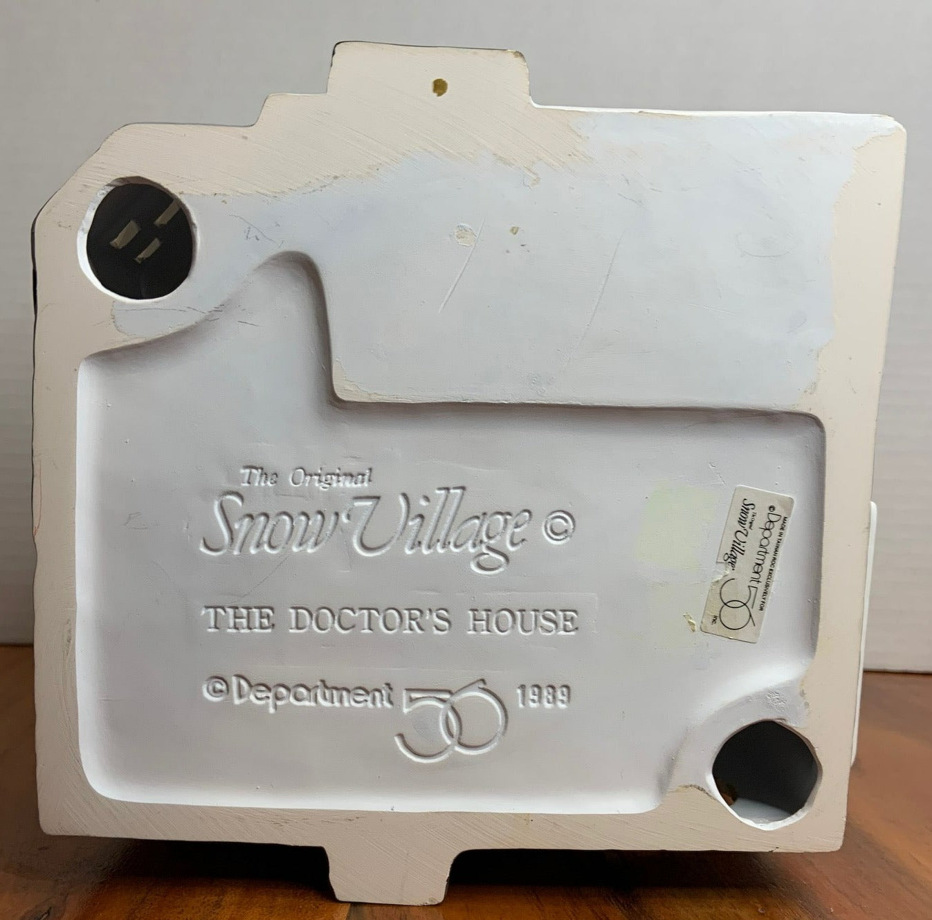 Released in 1989. Snow Village "Doctor's House" is a yellow 3-story Victorian Style home/office. Item # 51438. Retired in 1992. See photos for item and box condition.