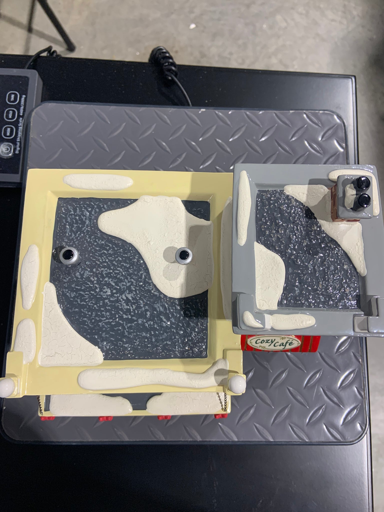 Released in 1999. Snow Village "Super Suds Laundromat" is a laundromat with adjoining "Maggie's Cozy Cafe' and Book Nook" Item #55006. Retired in 2001. See photos for item and box condition. Item is "used" Note- snow is cracked in some places.