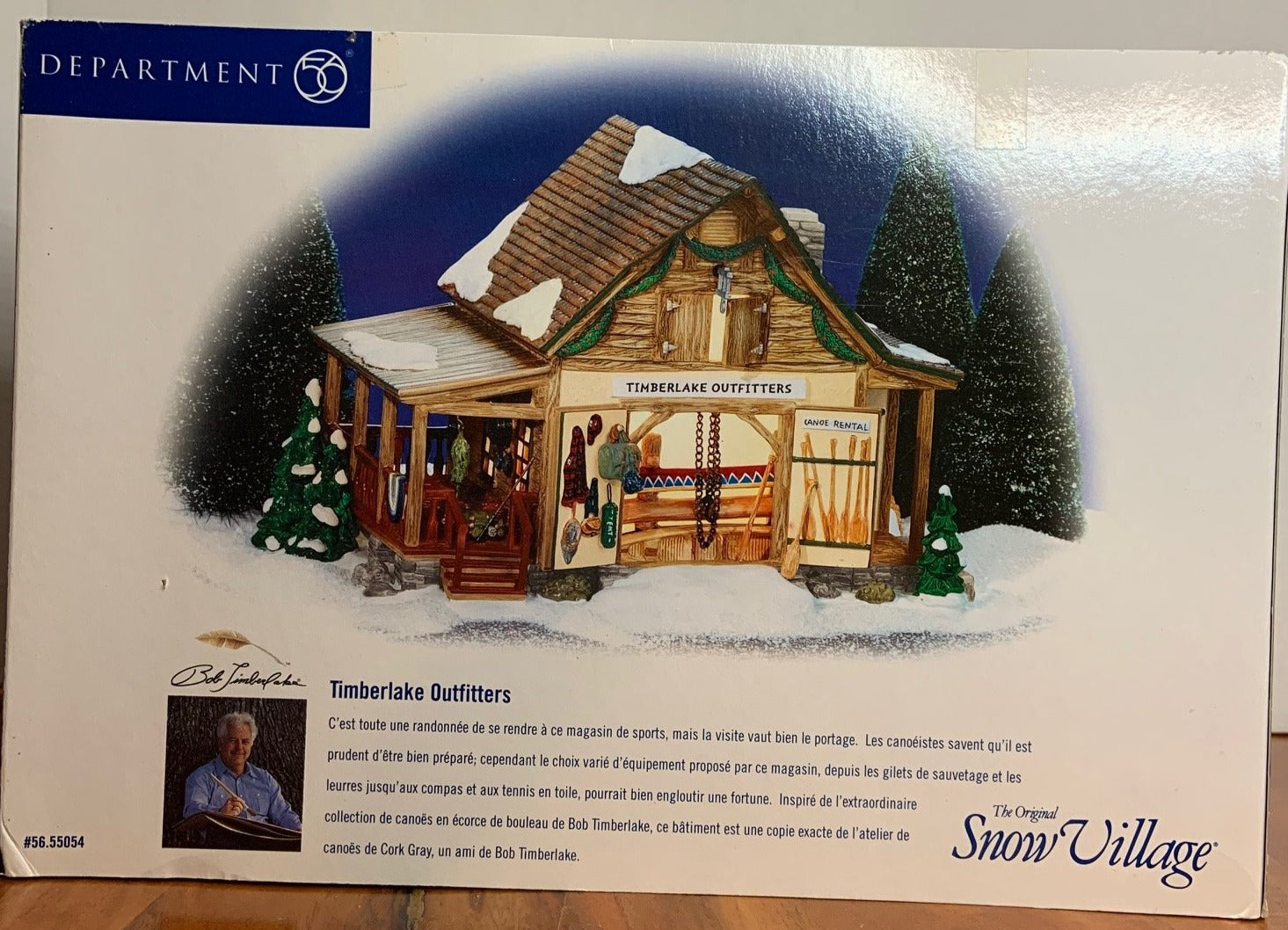 Released in 2000. Snow Village "Timberlake Outfitters" Item # 55054. Retired in 2002. Licensed by Bob Timberlake, Inc. Item is "used". See photos for item and box condition. Note: small chip in snow on side.