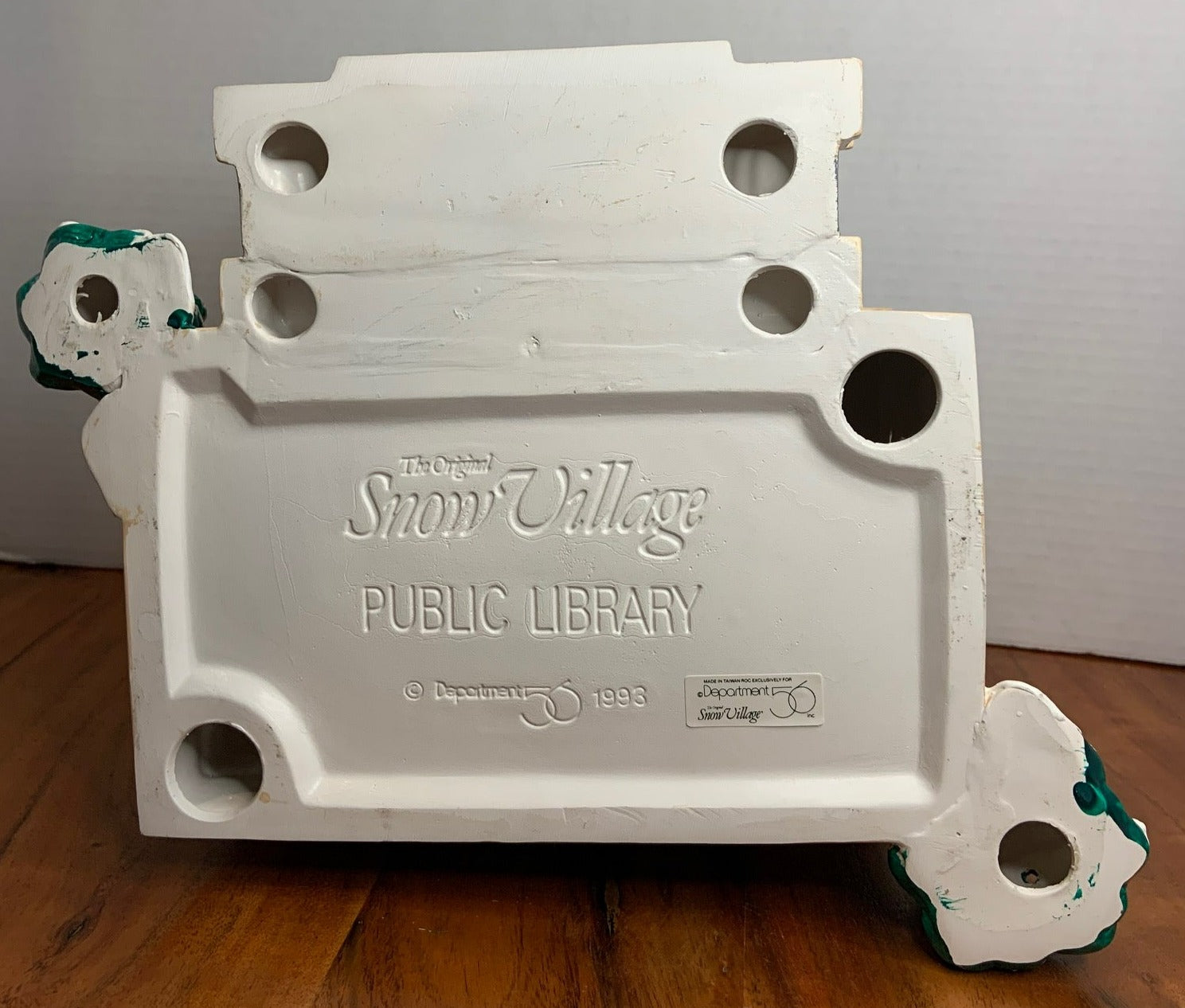 Released in 1993. Snow Village "Village Public Library" is a 2-tone majestic brick building with 4 white Greek columns on the front. Item # 54437. Retired in 1997. See photos for item and box condition.