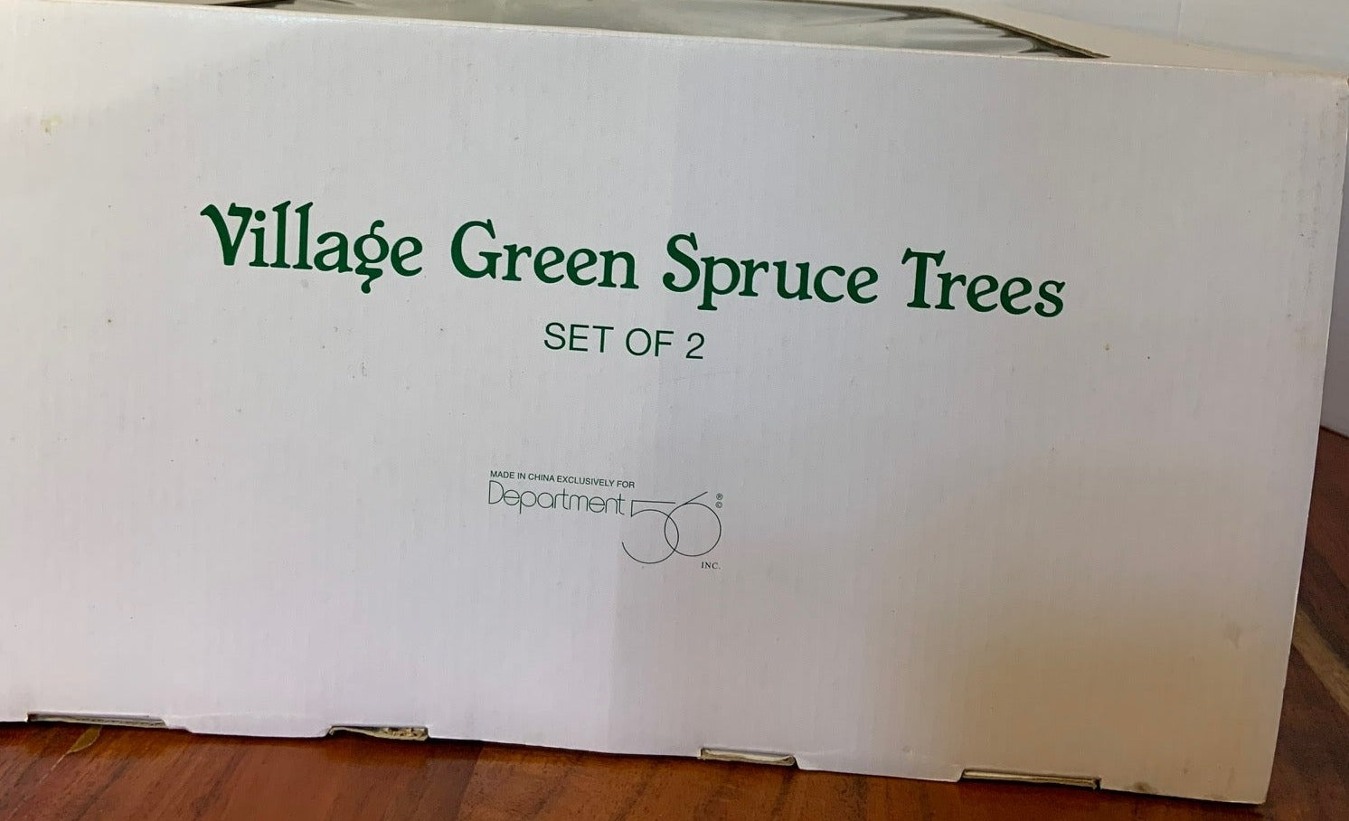 Released in 1996. Village "Green Spruce Trees" is a set of 2 assorted sized trees with white bases. Item #52637. Retired in 2006.